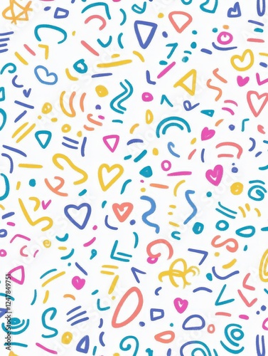 Colorful Abstract Shapes and Lines on White Background Pattern