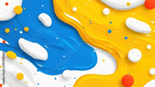Colorful Abstract Waves of Blue, Yellow, and White with Dots and Shapes