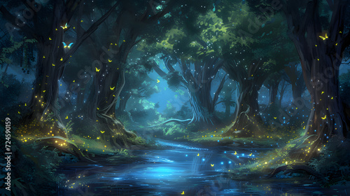Colorful and beautiful magical forest illustrations