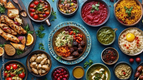 Colorful and Diverse Selection of Traditional Global Dishes on Table