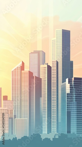 building, city landscape, skyline, urban, architecture, skyscraper, tall, city, modern, design, illustration, abstract, geometric, graphic, art, background, construction, commercial, residential, office, tower, highrise, structure, window, facades, style, view, pattern, area, region, scene, colourful, horizon, sunset, light, dawn, dusk, day, vibrant, bright, gradient, shape, form, complex, arrangement, perspective, detail, rendering