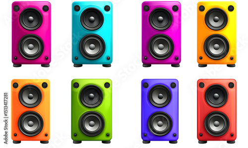 Colorful array of speakers showcasing vibrant audio equipment for entertainment