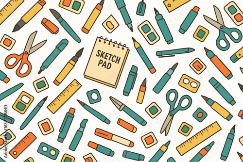 art, supply, vignetting, pad, marker, scissors, creativity, tool, colourful, design, element, office, education, drawing, painting, stationery, hobby, craft, workspace, illustration, pen, ruler, colours, palette, organisation, project, student, expression, planner, note, paper, sketching, artsy, inspiration, layout, space, bright, colours, working, area, organised, creative