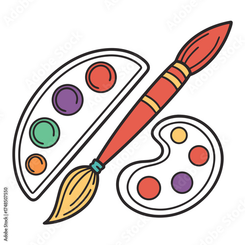 art, artist, painting, brush, paint, palette, colours, creativity, illustration, drawing, design, hobby, craft, education, school, studio, supply, equipment, tool, red, yellow, purple, green, orange, blue, white background, isolated, icon, symbol, graphic, element