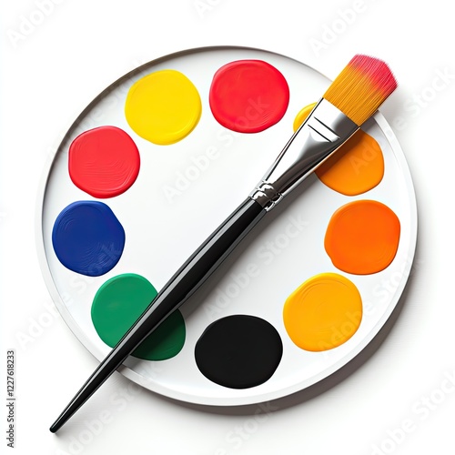 Colorful Artist Palette with Brush and Paints, Creative Art Supplies for Painting and Art Projects