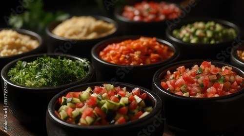 Colorful Assortment of Fresh Chopped Vegetables in Bowls