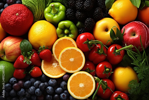 Colorful assortment of fresh fruits and vegetables, highlighting their natural beauty and nutritional value