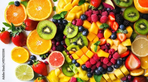 fruit, berry, pineapple, mango, strawberry, colourful, healthy, citrous, kiwi, grape, raspberry, blackberry, mint, slice, fresh, organic, nourishment, sweet, tropical, closeup, background, arrange, market, diet, freshen, dessert, summer, delicious, harvest, lifestyle, bright, appetising, nature, wellness, epicure, aesthetic, variety, vegetarian, energy, favor, vibrant, serve, plate, snack, refreshment