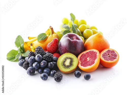fruit, fruit, fresh, healthy, food, colourful, berry, banana, grape, plum, kiwi, orange, red, blood, blackberry, blueberry, raspberry, strawberry, mint, green, yellow, purple, white, background, vitamin, nourishment, diet, delicious, sweet, tasty, juicy, ripe, summer, bright, vibrant, still, life, composition, nature, photo, closeup, isolated, studio, shot, high, resolution, image, picture, photo