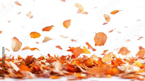 Colorful Autumn Leaves Falling Against Bright White Background