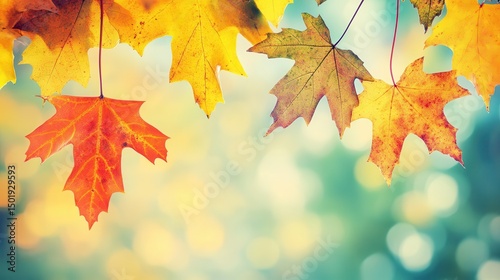 Colorful Autumn Leaves with Soft Focus Background and Bokeh Effect