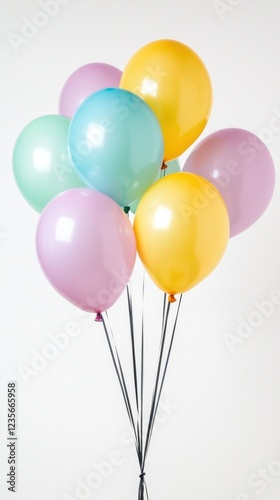 Colorful Balloons in Pastel Shades Flying Against White Background