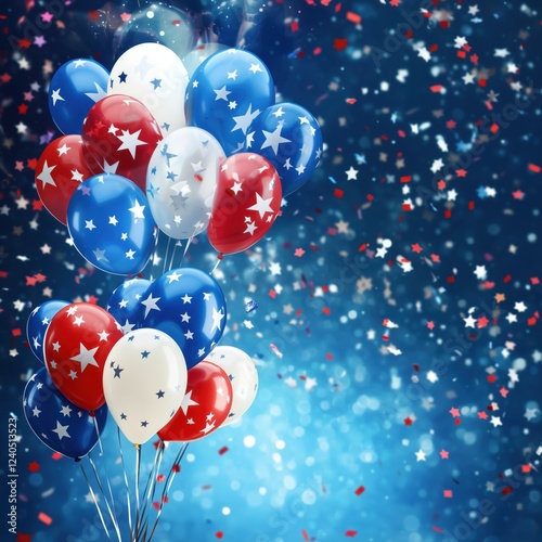 balloon, star, red, white, blue, confetti, celebration, party, festive, decoration, background, sparkle, holiday, event, joy, fun, cheerful, vibrant, colours, air, helium, gathering, anniversary, independence, birthday, new year, fireworks, festive season, joyful, party time, special occasion, colourful, copy space, banner, design, text, concept