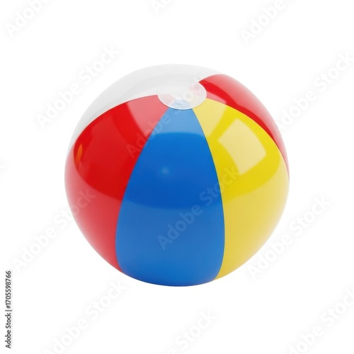 beach ball, ball, toy, game, summer, vacation, pool, water, fun, play, activity, round, inflatable, plastic, colourful, striped, red, blue, yellow, white, bright, sport, recreation, isolated, white background, studio shot, simple, clean, object