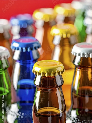 bottle, beer, brewery, drink, refreshment, beverage, alcohol, alcoholic, variety, assortment, collection, closeup, macro, detail, cap, top, metal, glasses, brown, blue, green, red, yellow, diverse, choice, selection, party, celebration, social gathering, event, pub, bar, eatery, vibrant, bright, cheerful, festive, occasion, special occasion, fun, enjoyment, leisure, background, texture, group, many