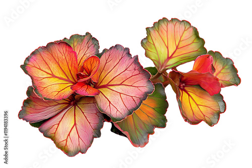 Colorful Begonia Leaves and Flowers in Vibrant Shades of Orange and Pink