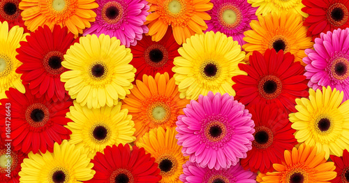 flower, gerbera, daisy, flower petals, colourful, bloom, blossom, nature, garden, floral, botanical, bright, vibrant, yellow, red, orange, pink, purple, background, texture, pattern, spring, summer, natural, decoration, design, ornament, beauty, cheerful, closeup, macro, plant, flowerbed, fresh, field, foliage, floret, landscape, growth, season, arrangement, organic, artistic, flora, bouquet