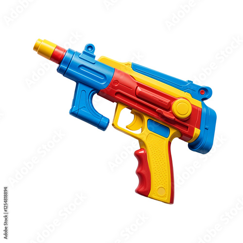 Colorful Blue Red Plastic Toy Gun and Yellow Detail with Futuristic Design