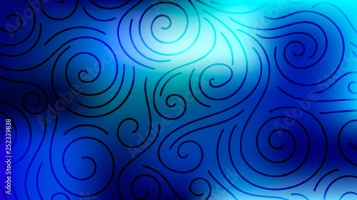 Colorful blurred background with thin line curls, swirls. Curly modern abstract gradient card. Business poster. Vector illustration.