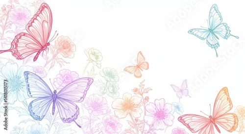 Colorful Butterflies Surrounding Floral Background in Pastel Shades