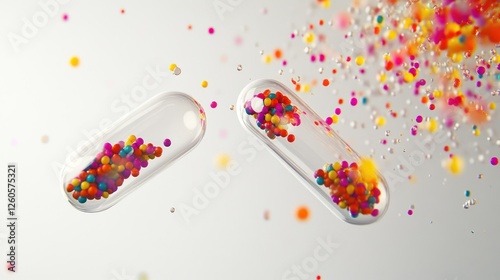 Colorful Capsule with Exploding Rainbow Spheres: A Pharmaceutical Concept