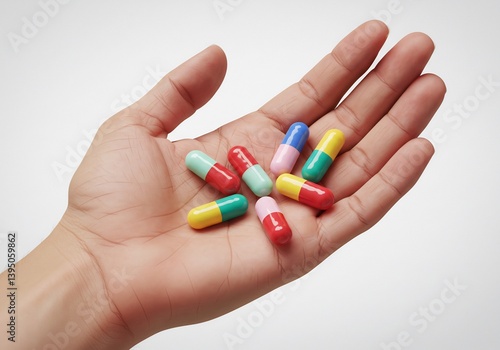 Colorful Capsules Resting Gently in Open Palm. AI Generated