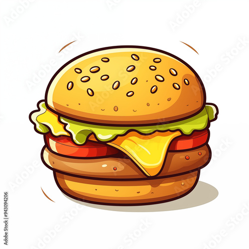 burger, cheeseburger, cartoon, illustration, food, fast food, hamburger, cheese, lettuce, tomatoes, drawing, graphic, delicious, tasty, snack, meal, comfort food, junk food, eatery, menu, icon, yellow, red, green, simple, isolated, playful, children, animation, fun, colourful, lunch, digital artwork, deliciously, appetising, take-away, bar-b-q, kitchen, holiday, beef, bread, meat, sandwich, fast, unhealthy