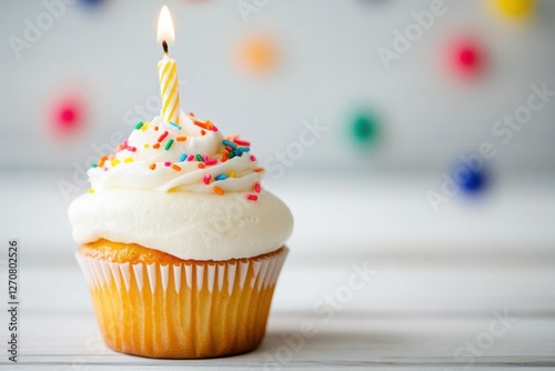 cupcake, candle, sprinkle, celebration, colourful, dessert, frosting, sweet, birthday, party, vanilla, icing, baking, pastry, festive, decoration, treat, single, flames, light, happiness, joy, food, white, background, rainbow, event, bright, fun, cheerful, delicious, confectionery, culinary, whipped, creamy, topping, baked, homemade, tasty, snack, artistic, whimsical, vibrant, cookery, epicure, appetising, special, occasion