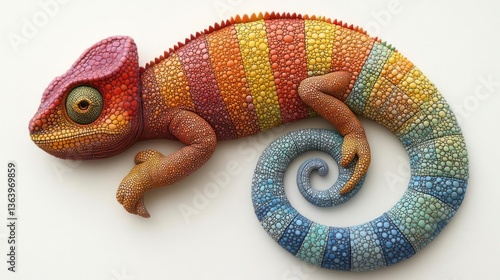 Colorful chameleon sculpture. Detailed, vibrant, and textured