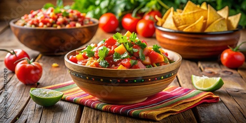 chips, salsa, dip, party, friends, gathering, snack, food, mexican food, bowl, wood, table, colourful, vibrant, delicious, tasty, fresh, homemade, rustic, texture, celebration, togetherness, sharing, fun, casual attire, summer, spring, autumn, winter, holiday, family, group, occasion, event, food photography, hi-res, studio shot, royalty free, background, image, photo