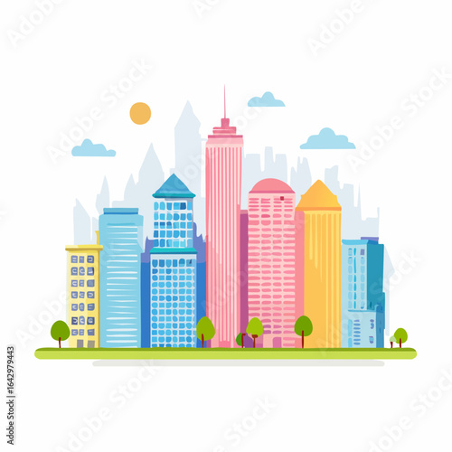 Colorful Cityscape Banner. Urban Skyline
