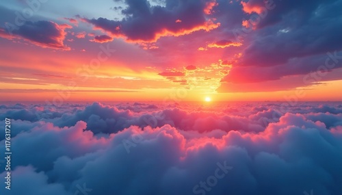 Colorful cloud formations in the sky at sunset, sunset, mist, fog