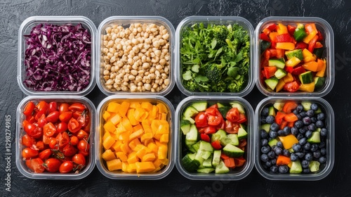 vegetable, fruit, container, fresh, healthy, organic, preparation, colours, red, green, yellow, blue, purple, diet, nourishment, meal, cooking, produce, snack, ingredient, kitchen, vibrant, clean, lifestyle, wellness, freshness, assortment, variety, arrangement, square, natural, wholesome, chopped, diced, salad, culinary, healthy eating, grocery