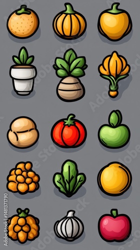 food, vegetable, fruit, plant, harvest, garden, healthy, organic, nature, growing, ripe, autumn, winter, spring, summer, produce, farm, natural, icon, graphic, design, illustration, element, symbol, round, cartoon, cute, simple, fresh, vitamin, diet, cooking, ingredient, nourishment, kitchen, farming, crop, epicure, vegan, vegetarian, raw, receipe, sustainable
