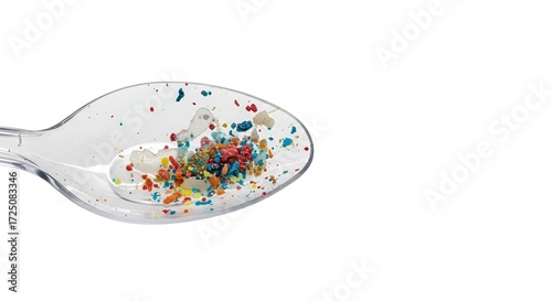 sprinkle, colourful, confectionery, spoon, plastic, transparent, food, candy, dessert, sweet, red, yellow, blue, green, many-coloured, isolated, closeup, detail, food photography, isolated image, nourishment, design element, composition, copy space, kitchen utensile, spoonful, background, white background, studio shot, macro, delicious, tasty, sweetness, horizontal