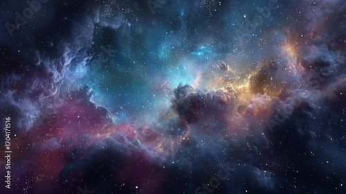 Colorful cosmic galaxy nebula cloud with shining stars in outer space night sky, vibrant astronomy universe background, starlit cosmos with supernova energy for celestial wallpaper design