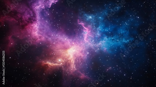 Colorful cosmic nebula, vibrant pink and blue gas clouds swirling in deep space, ideal for sci-fi themes or celestial designs.