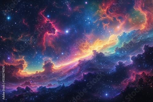 Colorful Cosmic Scene Featuring Bright Nebula and Shimmering Stars