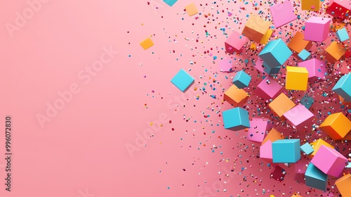 colourful, abstract, background, pink, blue, yellow, green, geometric, design, cube, pattern, shape, three-dimensional, minimal, art, minimalism, creative, graphic, texture, contemporary, bright, celebration, party, confetti