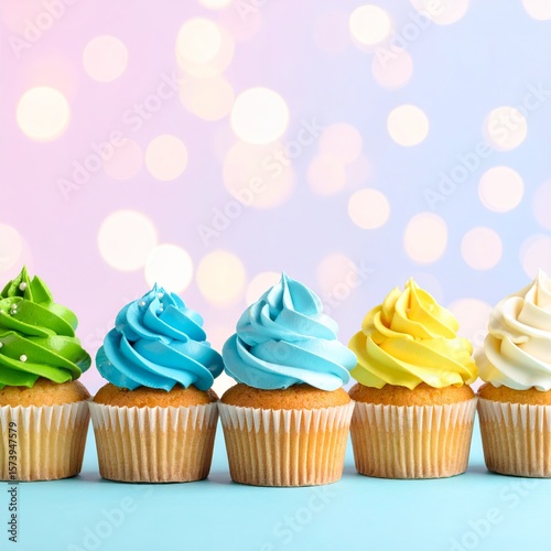 cupcake, dessert, sweet, frosting, colourful, icing, bakery, treat, celebration, party, birthday, food, cream, delicious, sugar, vanilla, yellow, blue, green, white, sprinkle, closeup, baked goods, background, bokeh, bright, cheerful, confection, confectionery, design, edible, favor, epicure, holiday, isolated, light, macro, pastel, pattern, pink, purple, row, studio, sweet, tasty, topview, vibrant, cake, pastry