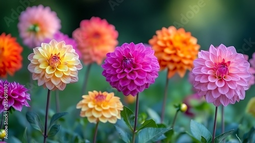 Colorful Dahlia Flowers in Garden