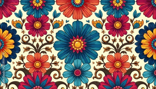 Colorful Damask Florals in a Seamless Loop, floral arrangements, repeating designs, floral patterns