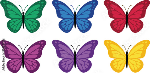Colorful Decorative Butterfly Silhouettes in Symmetrical Arrangement for Nature, Art, Design, and Educational Use