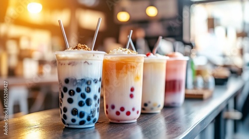 Colorful Desserts with Tapioca Pearls on Cafe Table