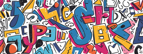 colorful different shapes, swirls, shapes, arches, squiggles, brush strokes and doodles. geometric figures. abstract background in pop art style