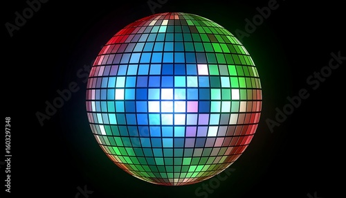 disco, ball, colourful, light, reflective, sphere, geometric, vibrant, glowing, bright, pixel, shiny, many-coloured, party, dance, night, club, music, retro, three-dimensional, design, digital, abstract, entertainment, graphic, illustration, round, patterned