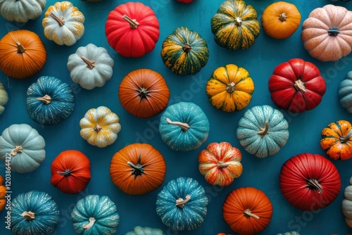 pumpkin, colourful, display, vibrant, blue, autumn, fall, decoration, harvest, crop, seasonal, background, pattern, nature, round, gourd, smooth, textured, arrangement, fresh, market, holiday, shape, rustic, organic, single, group, bright, cheerful, orange, yellow, green, white, red, unique, small, large, creative, farm, festive, art, standard, detailed