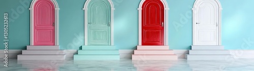 door, colourful, interior, modern, architecture, step, pastel, design, space, bright, mint, pink, red, white, wall, decor, home, style, minimalism, flooring, contrast, shadow, light, entrance, room, perspective, vibrant, aesthetic, contemporary, elegance
