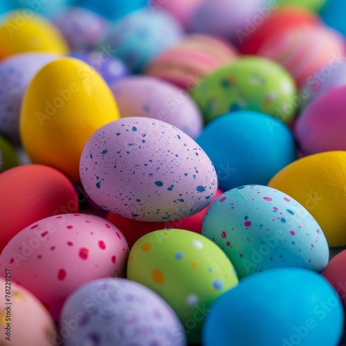 Colorful Easter Eggs Background, Decorative Egg Pattern, Happy Easter Mockup with Copy Space
