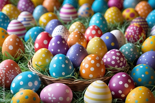 Colorful Easter Eggs Displayed Against a Festive Background